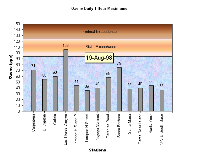 Ozone Daily 1 Hour Maximums – August 19, 1998