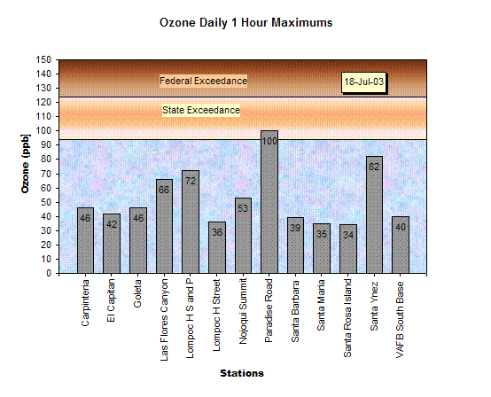 Ozone Daily 1 Hour Maximums – July 18, 2003