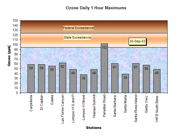 Ozone Daily 1 Hour Maximums – September 30, 2003