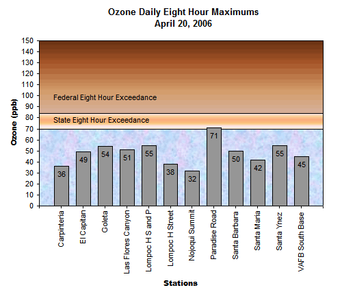 Chart Ozone Daily 8 Hour Maximums April 20, 2006