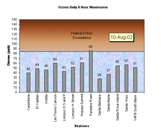 Ozone Daily 8 Hour Maximums – August 10, 2002