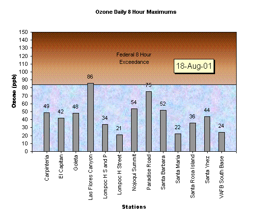 Ozone Daily 8 Hour Maximums – August 18, 2001