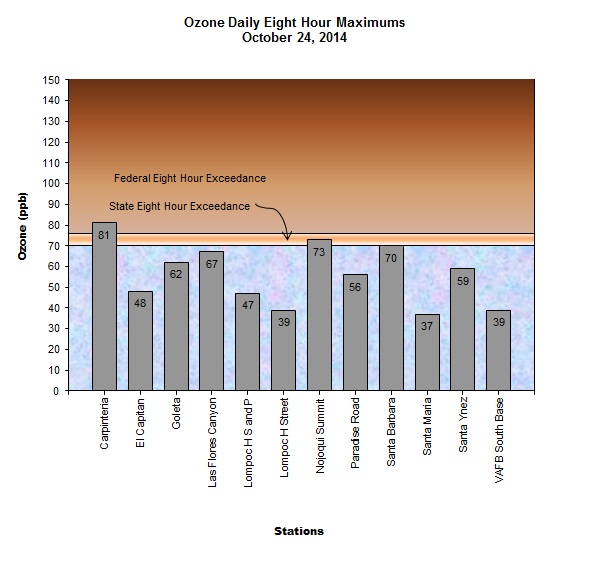 Ozone Daily Eight Hour Maximums – October 24, 2014