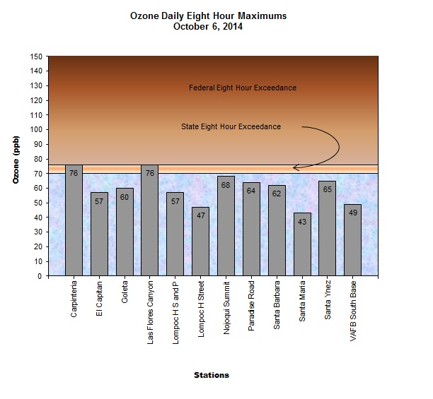 Ozone Daily Eight Hour Maximums – October 6, 2014