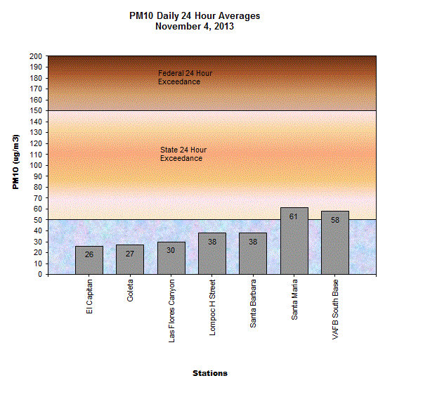Chart PM10 Daily Averages - Novemberr 4, 2013