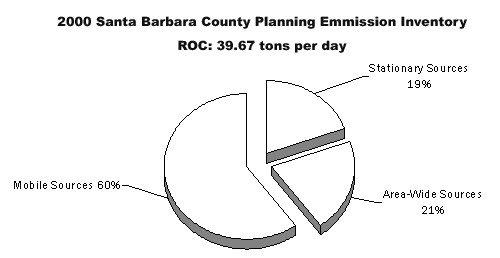 In this 2001 Plan, an updated emission inventory was developed for 1999. This inventory serves as our attainment emission inventory and is used to forecast emissions for 2005, 2010, and 2015. The 1999 attainment inventory was developed in accordance with ARB and USEPA policies and procedures and represents the most up-to-date inventory established for Santa Barbara County. The emissions inventory follows the organizational structure developed by ARB and assigns all air pollution sources into one of four categories. The four categories are stationary sources, area-wide sources, mobile sources, and natural sources. On-road mobile source emissions are estimated with the latest approved computer models, vehicle registration information, and emission factors.